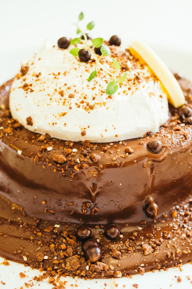Пирожное в шоколаде со взбитыми сливками Обои для рабочего стола 640x960