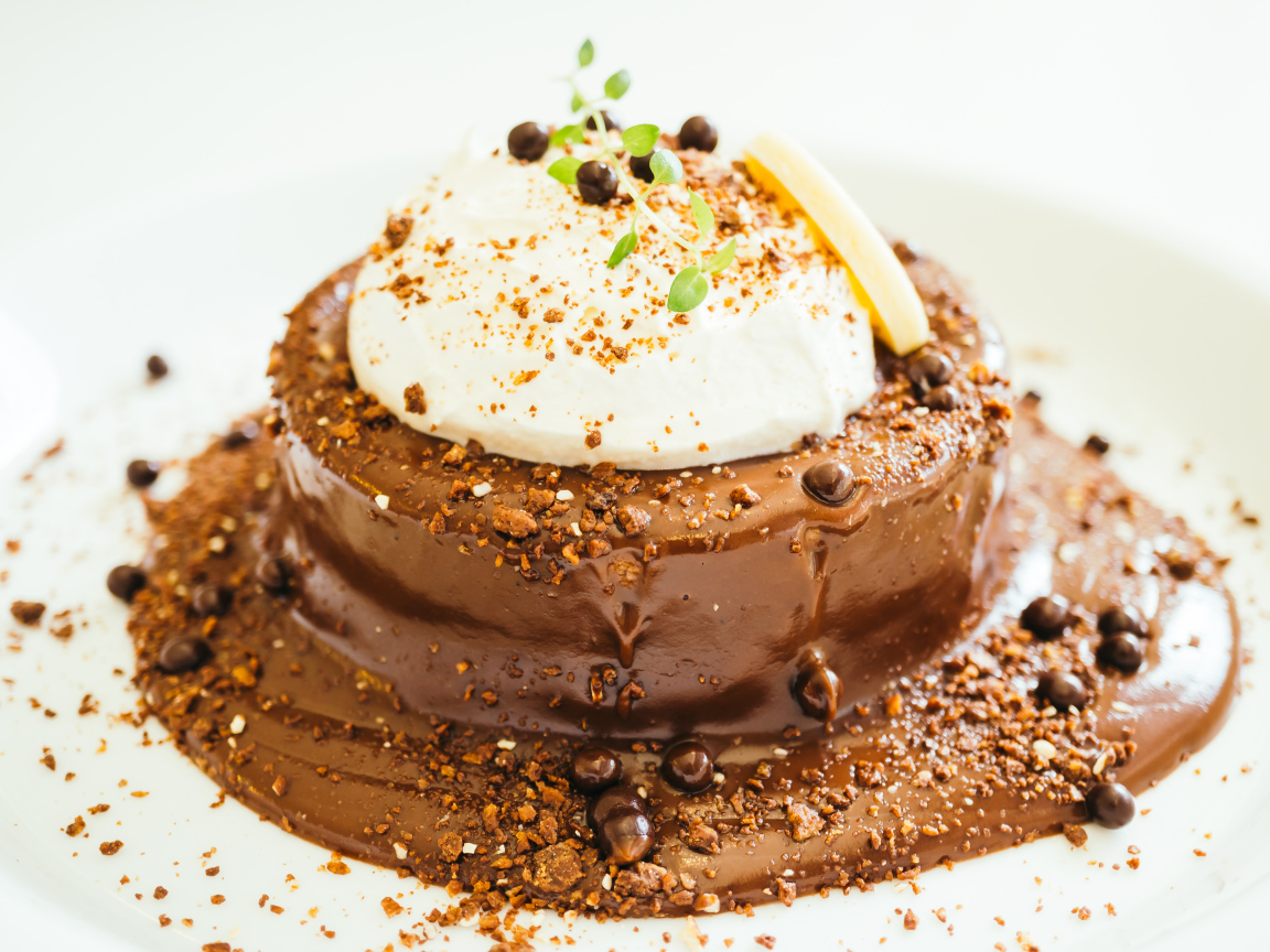 Пирожное в шоколаде со взбитыми сливками Обои для рабочего стола 1152x864
