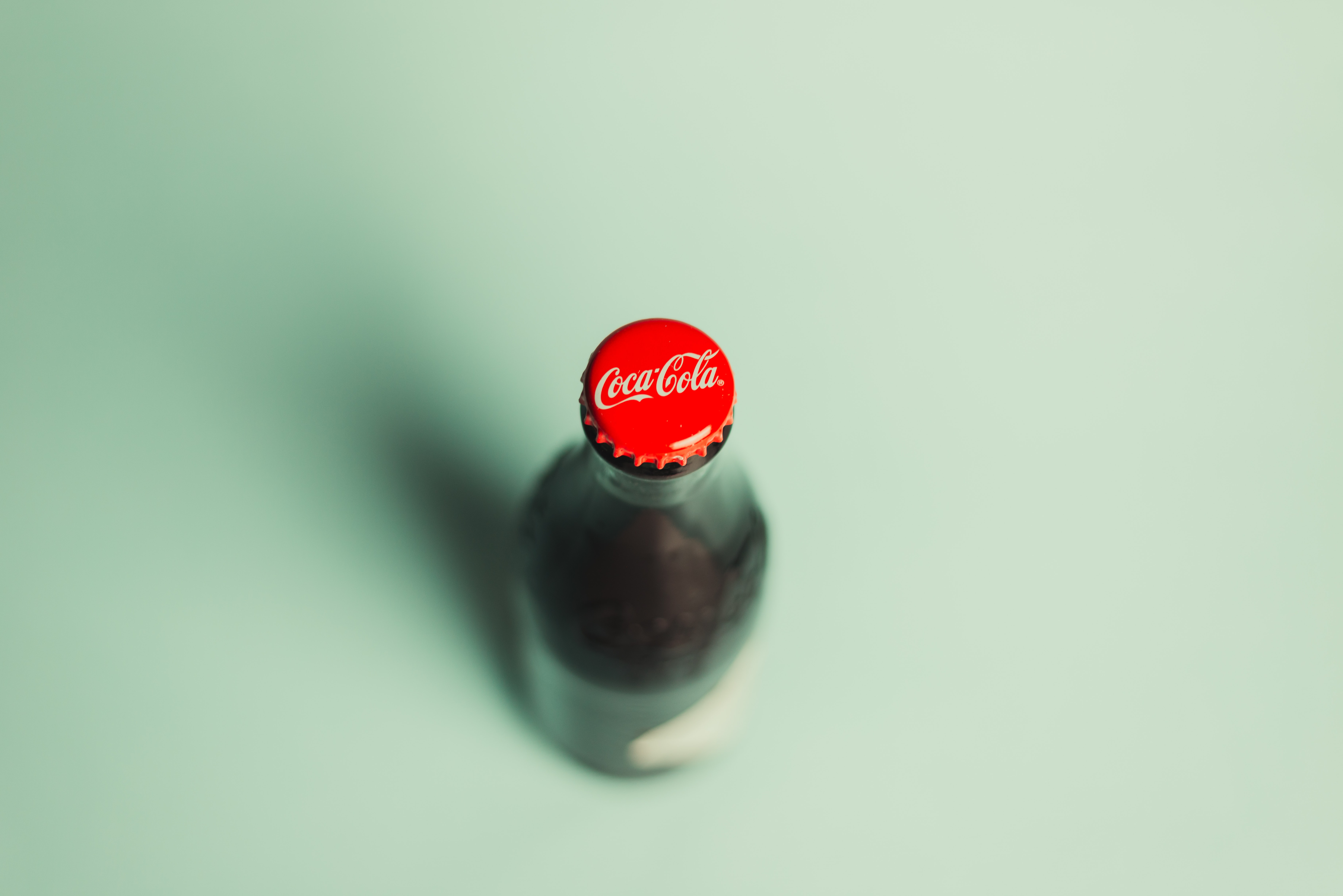 Стеклянная бутылка кока колы вид сверху - 7360x4912