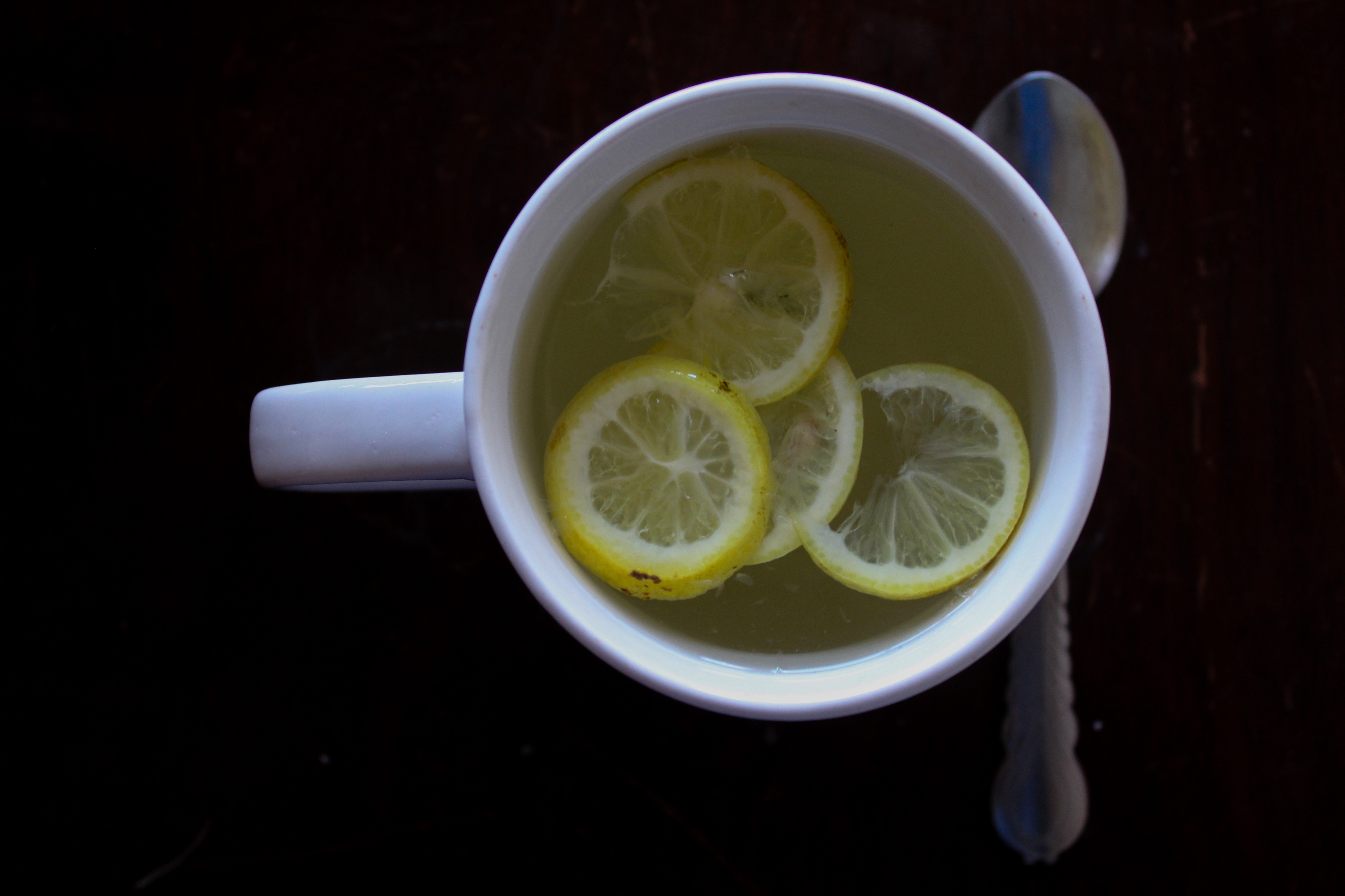 Зеленый чай с лимоном на черном фоне - 5184x3456
