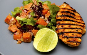 Кубики куриного мяса с овощами на тарелке