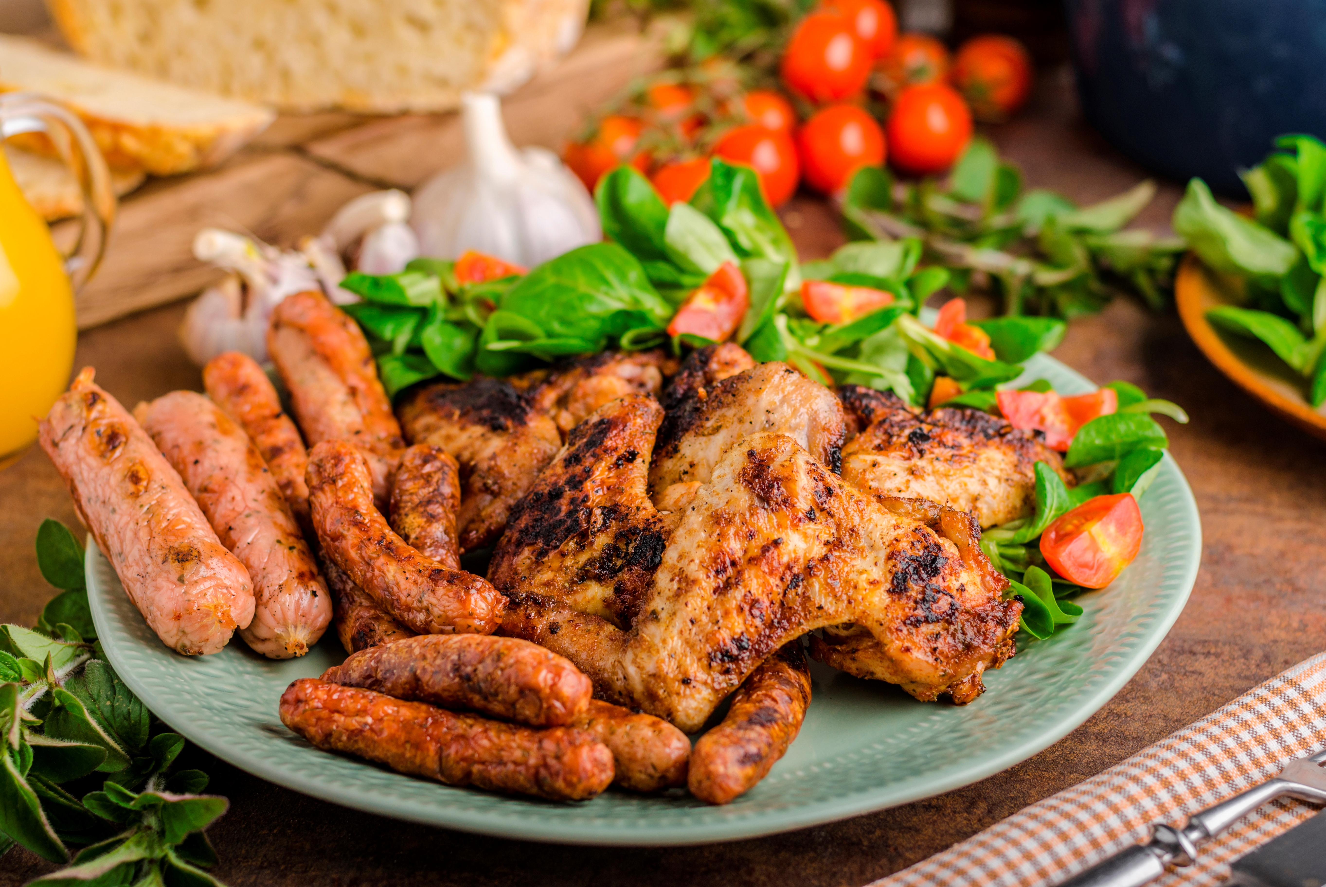 Жареные куриные крылышки с сосисками - 5452x3650