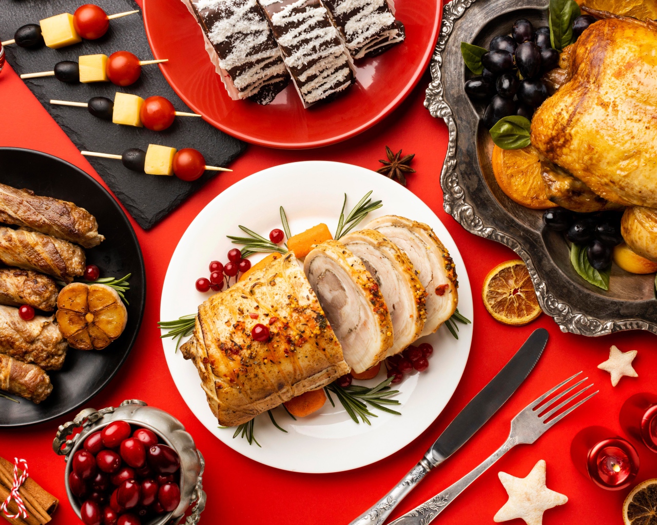 Мясные блюда на праздничном столе Обои для рабочего стола 1280x1024