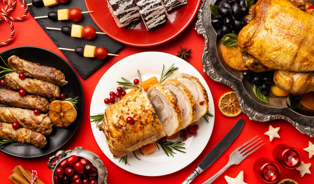 Мясные блюда на праздничном столе Обои для рабочего стола 1024x600