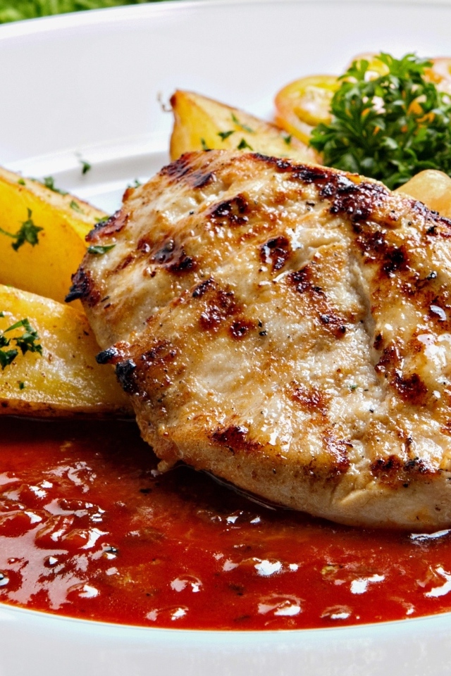 Кусок мяса гриль на тарелке с картофелем Обои для рабочего стола 640x960