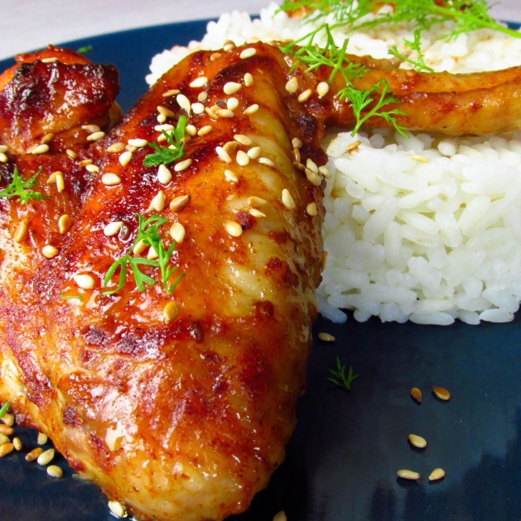 Жареные куриные крылышки с рисом Обои для рабочего стола 1024x1024