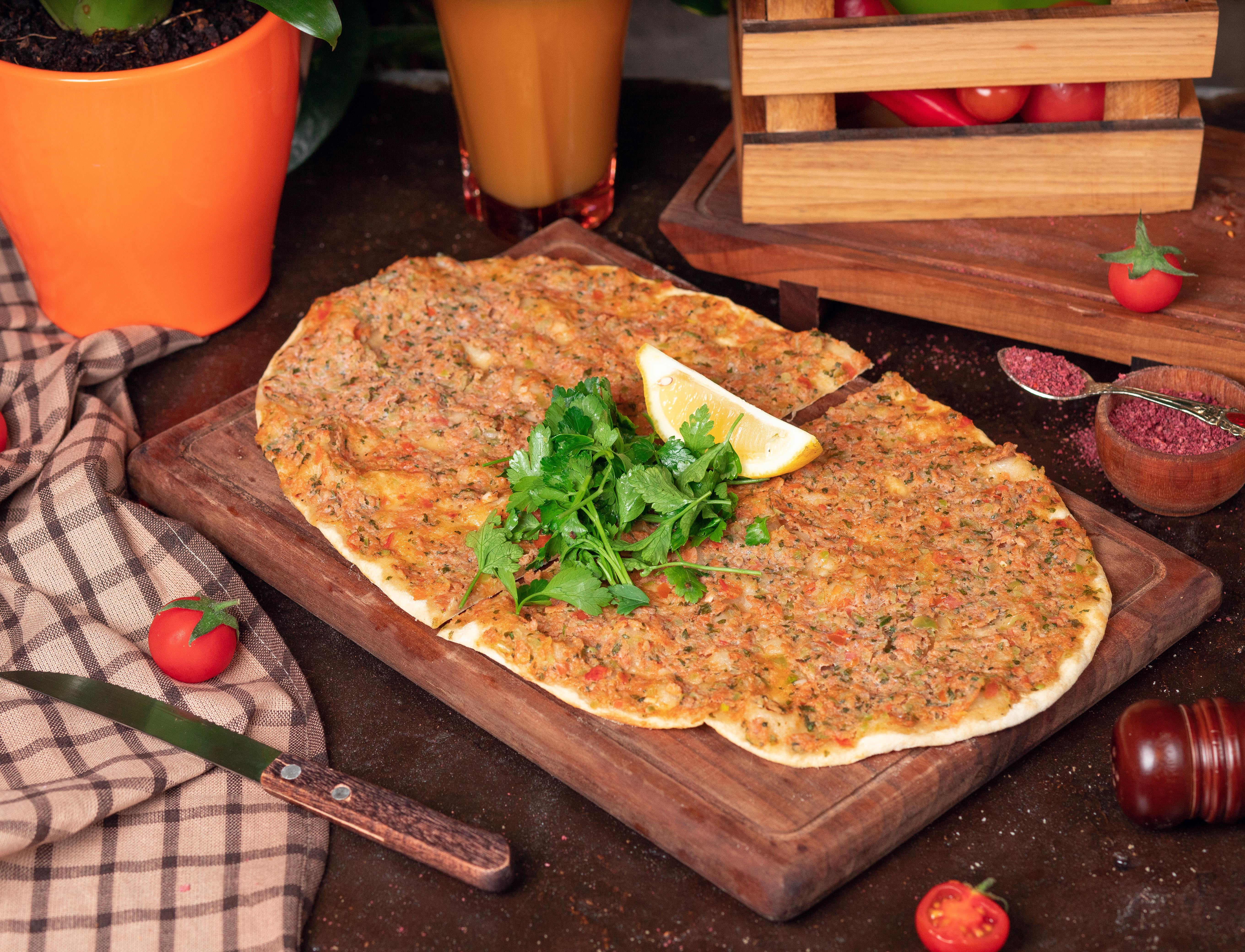 Турецкая пицца Лахмаджун на столе - 5440x4160