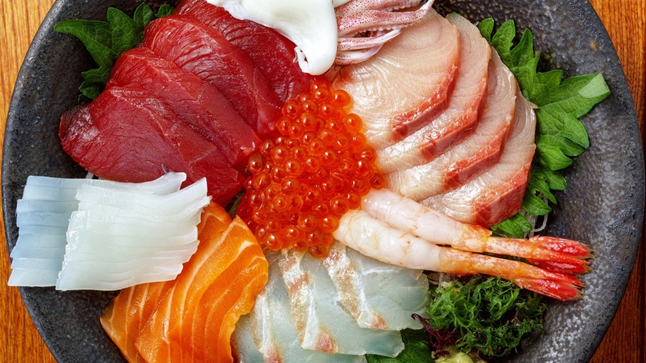 Рыбная нарезка в тарелке Обои для рабочего стола 1280x720