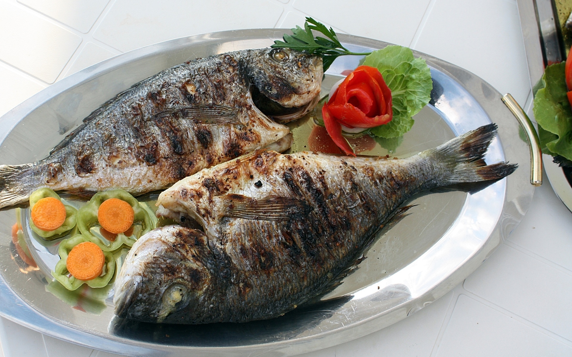 Запеченная рыба на тарелке с овощами - 3715x2460