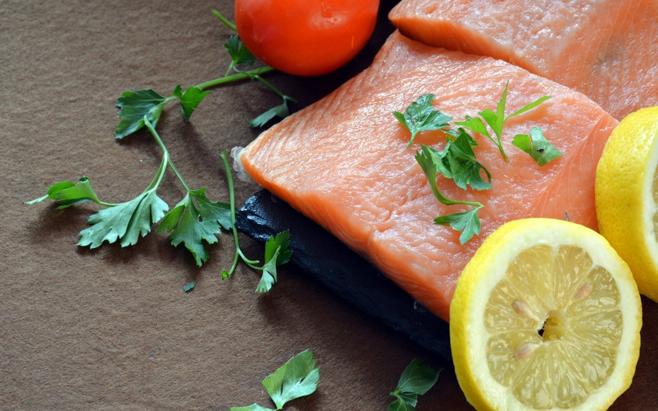 Красная рыба с лимоном и зеленью петрушки - 2048x1365