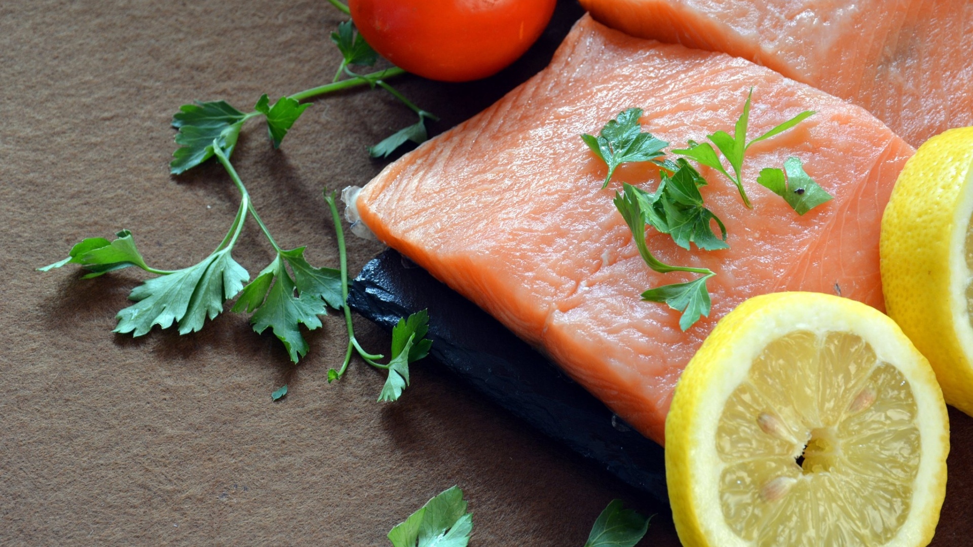 Красная рыба с лимоном и зеленью петрушки - 2048x1365
