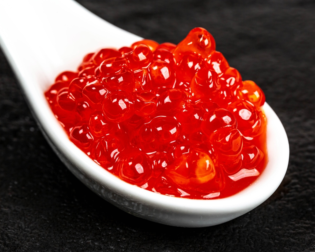 Красная икра на белой ложке крупным планом Обои для рабочего стола 1280x1024