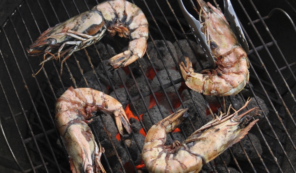 Креветки барбекю на решетке Обои для рабочего стола 1024x600