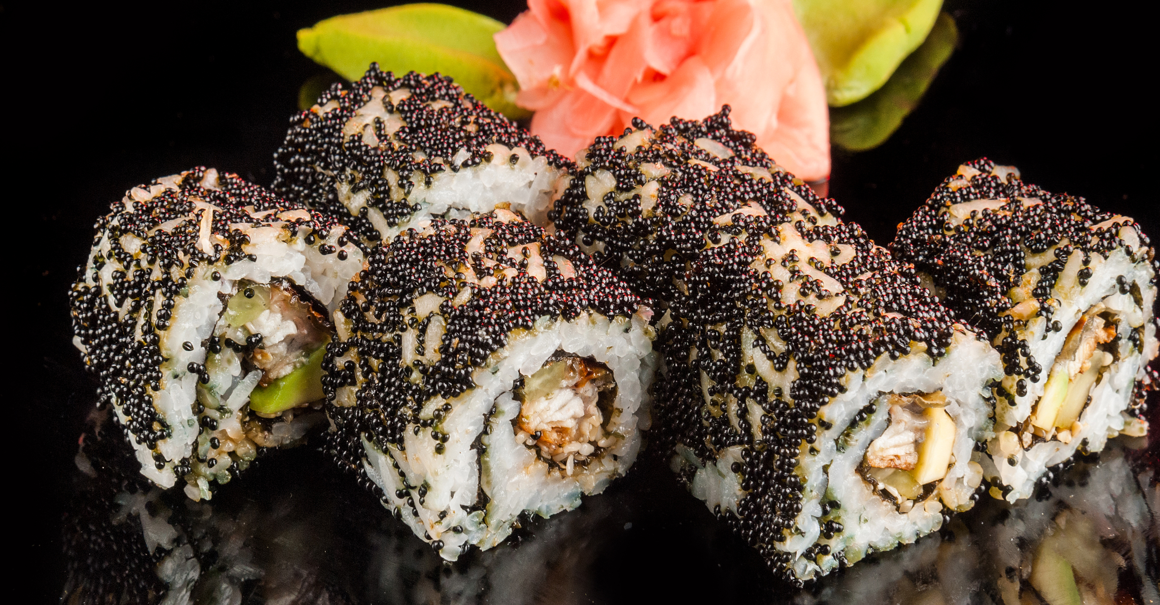 Аппетитные роллы с черной икрой - 3872x2022