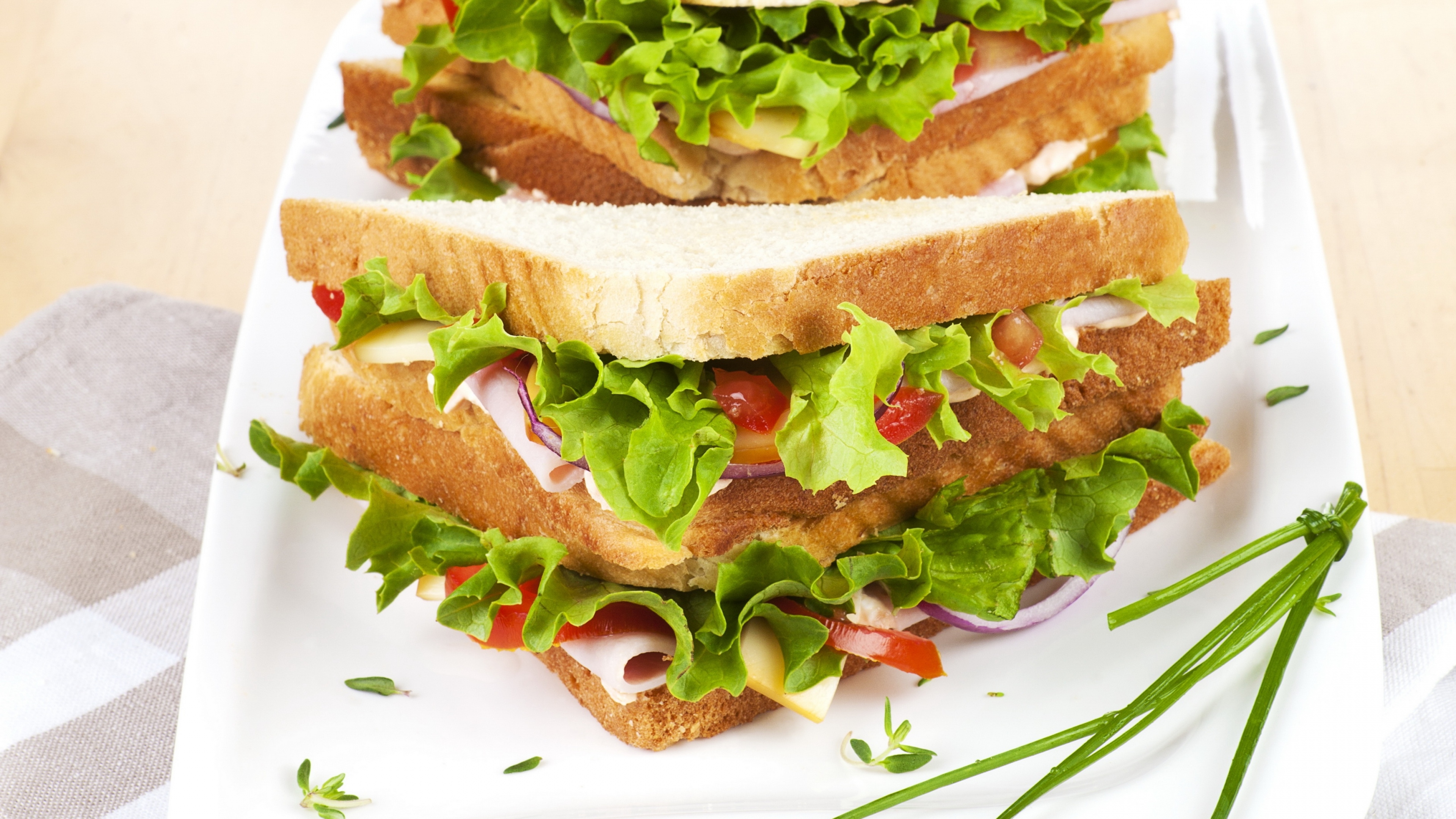 Вкусный сэндвич с зеленью и ветчиной - 3840x2160