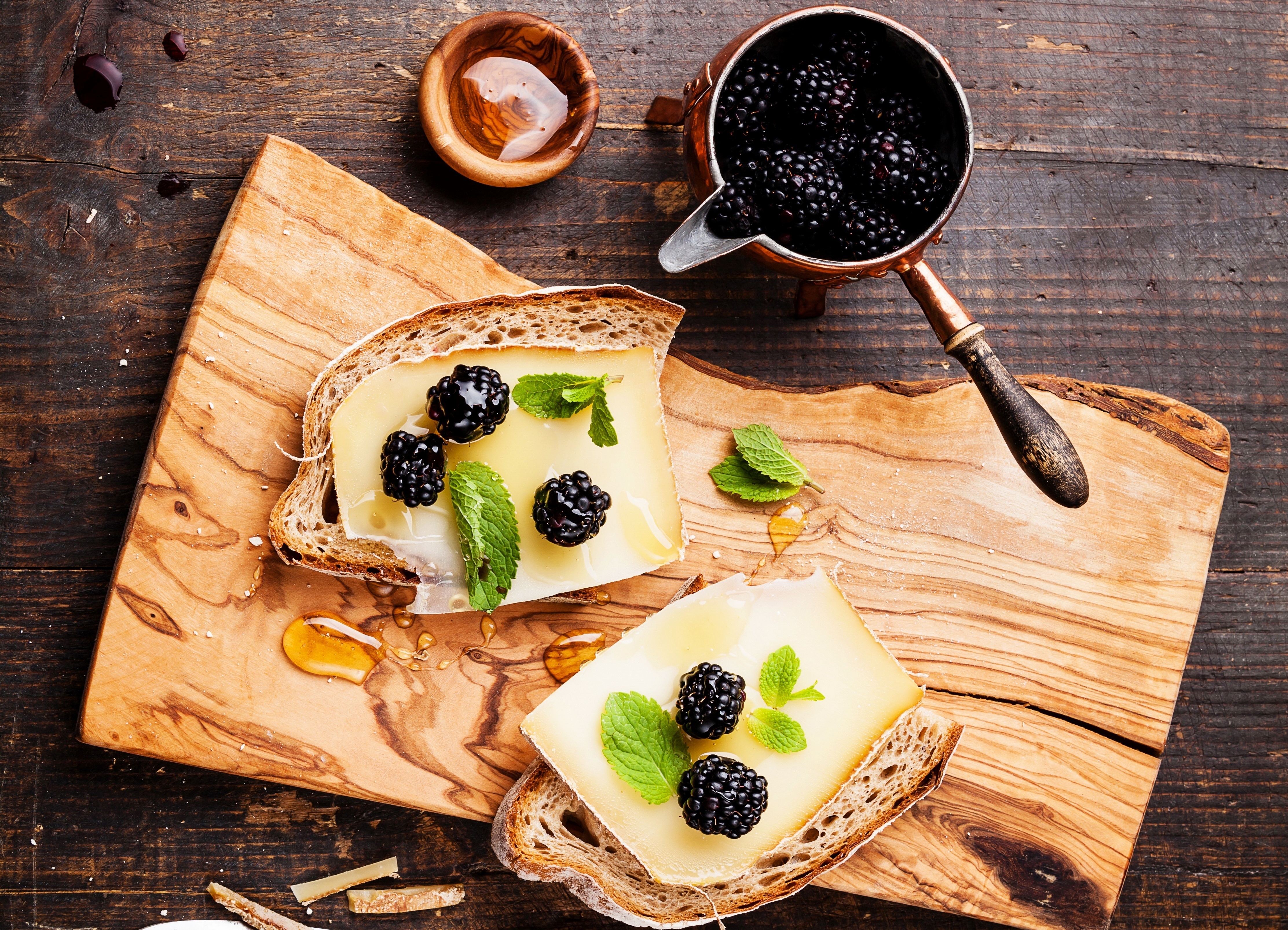 Обои: Бутерброды с сыром, медом и ягодами черники