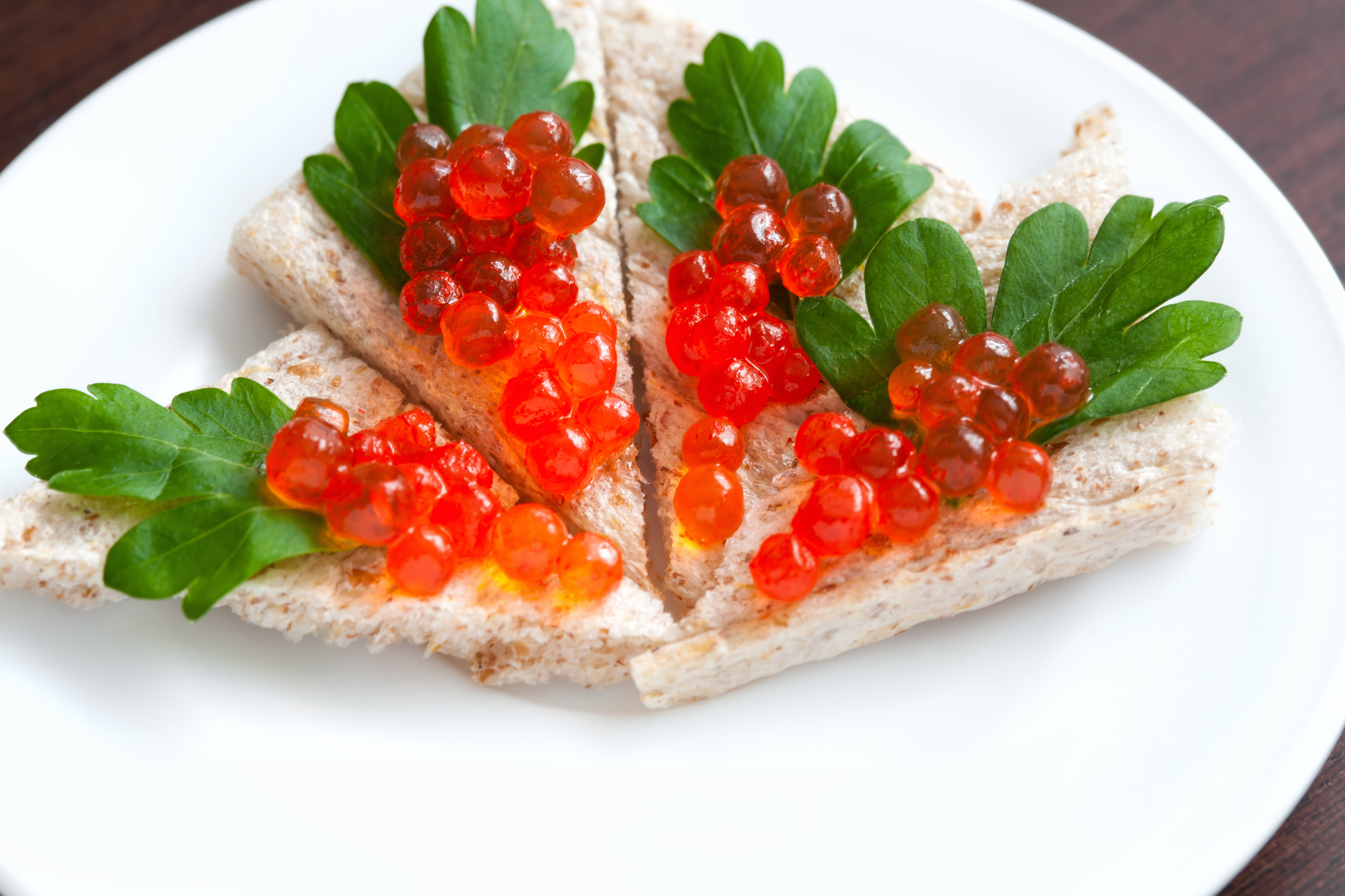 Бутерброды с красной икрой и листиками петрушки - 4368x2912