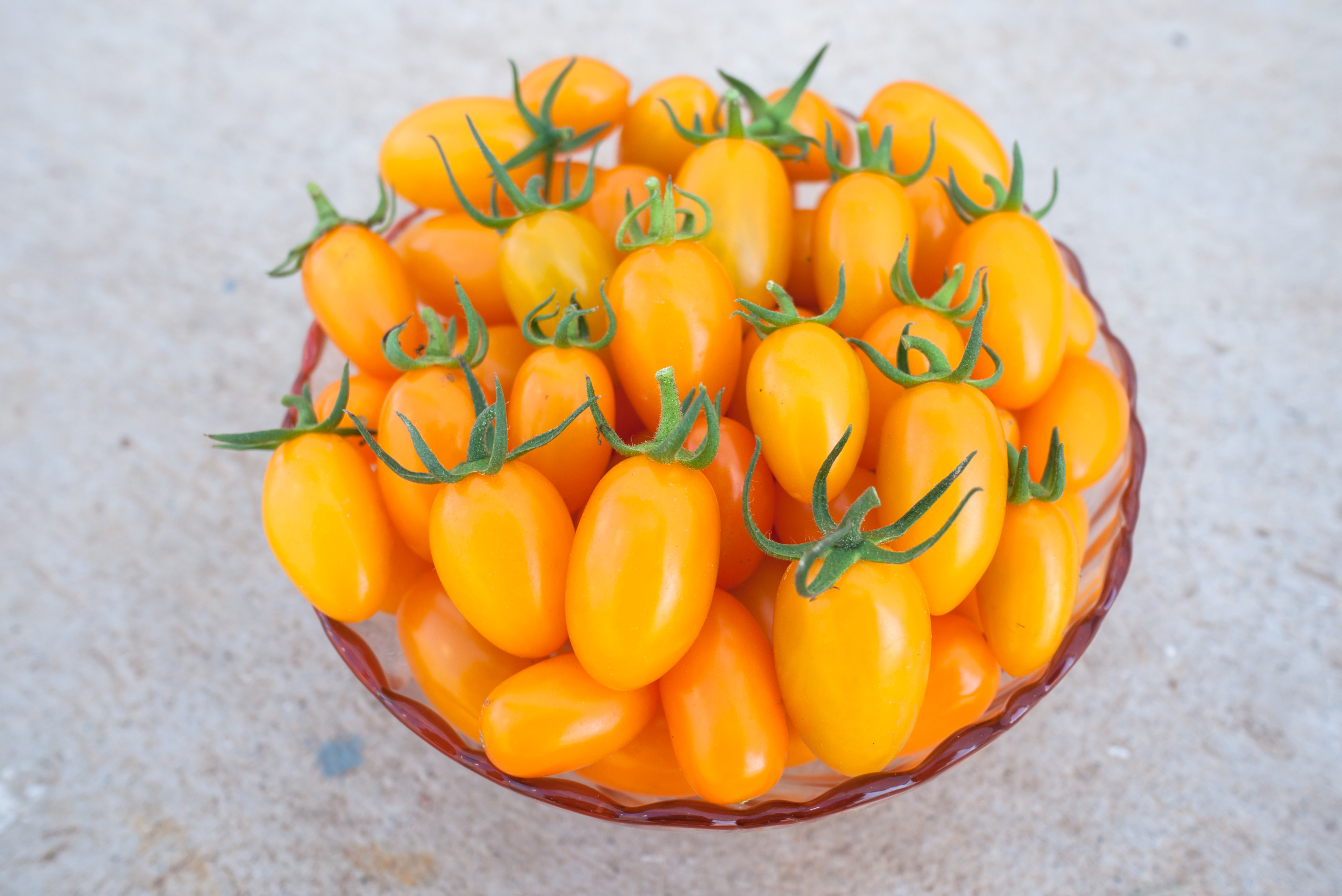 Оранжевые помидоры на тарелке крупным планом - 4238x2831