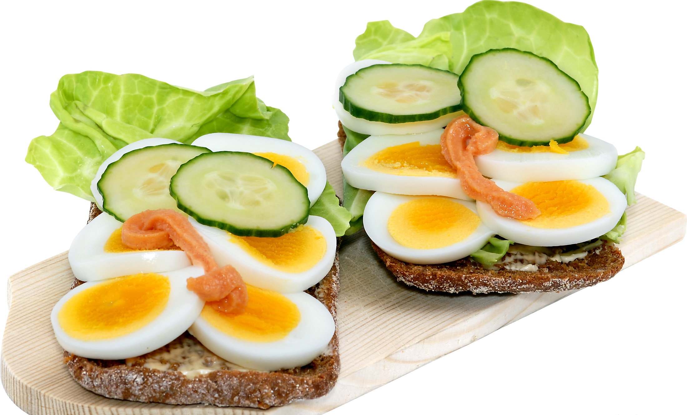 Бутерброды с огурцом, листьями салата и яйцом - 2200x1330
