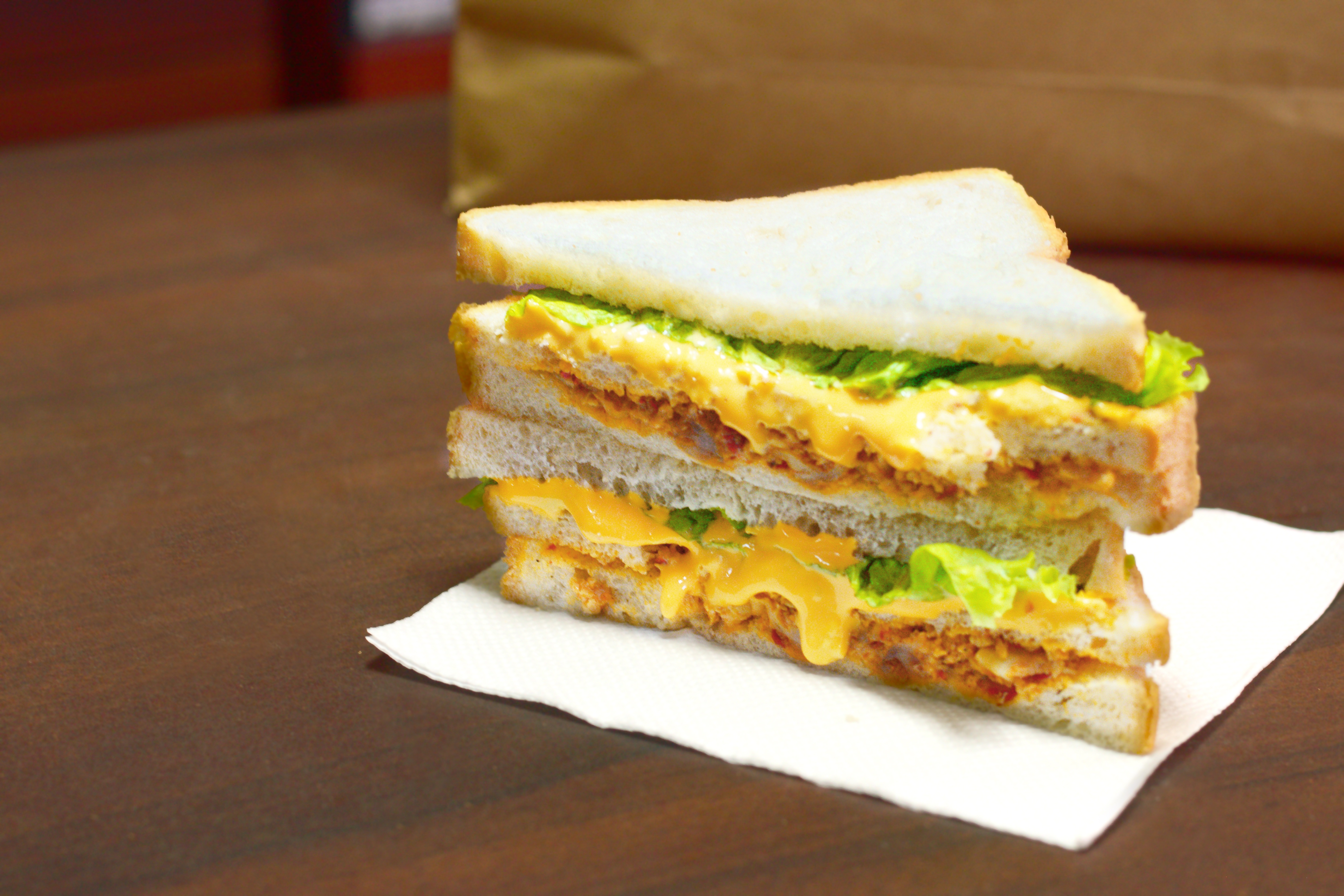Сэндвич с сыром и листьями салата на столе - 6000x4000