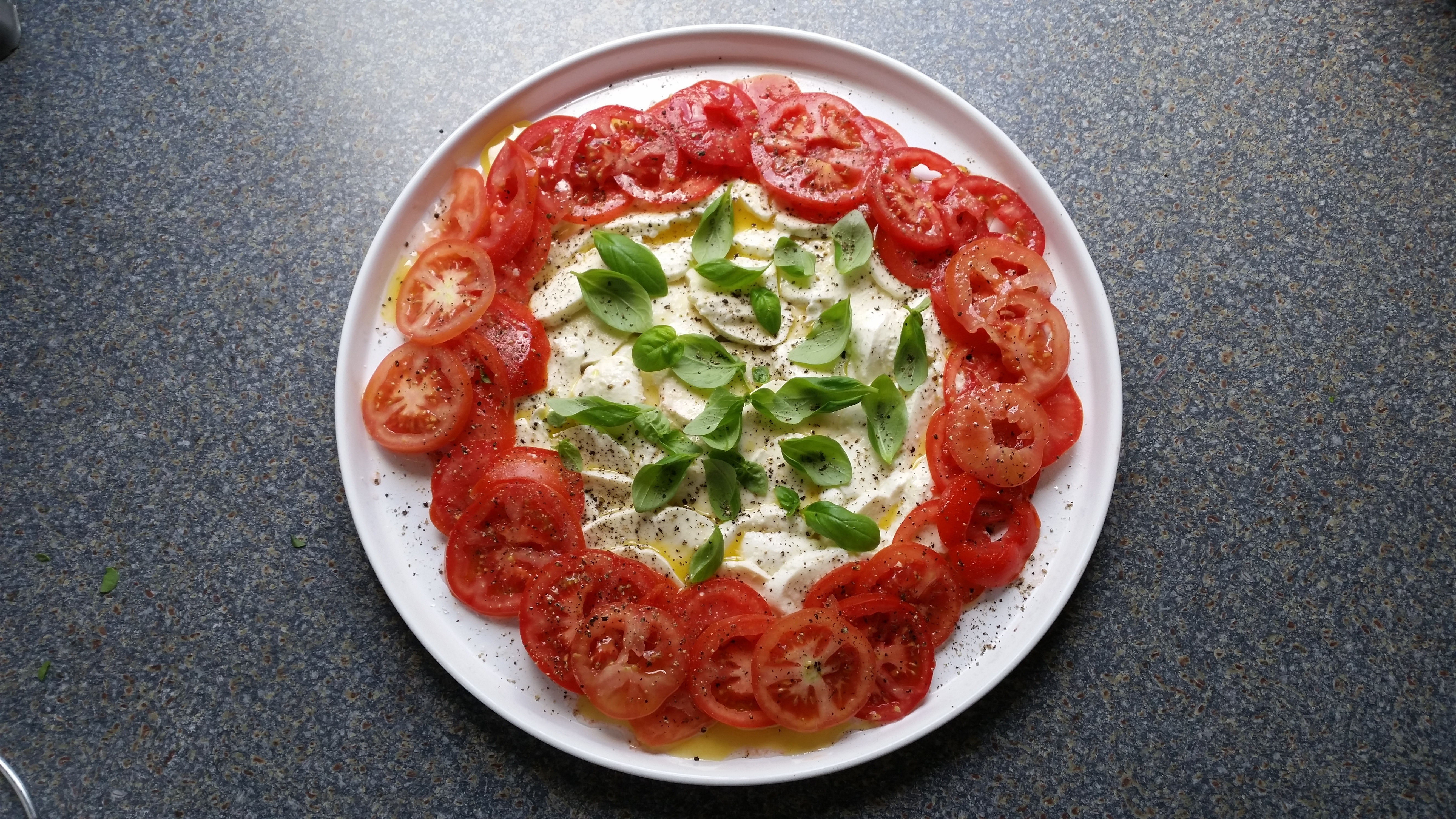 Обои: Итальянский сыр моцарелла с помидорами и базиликом