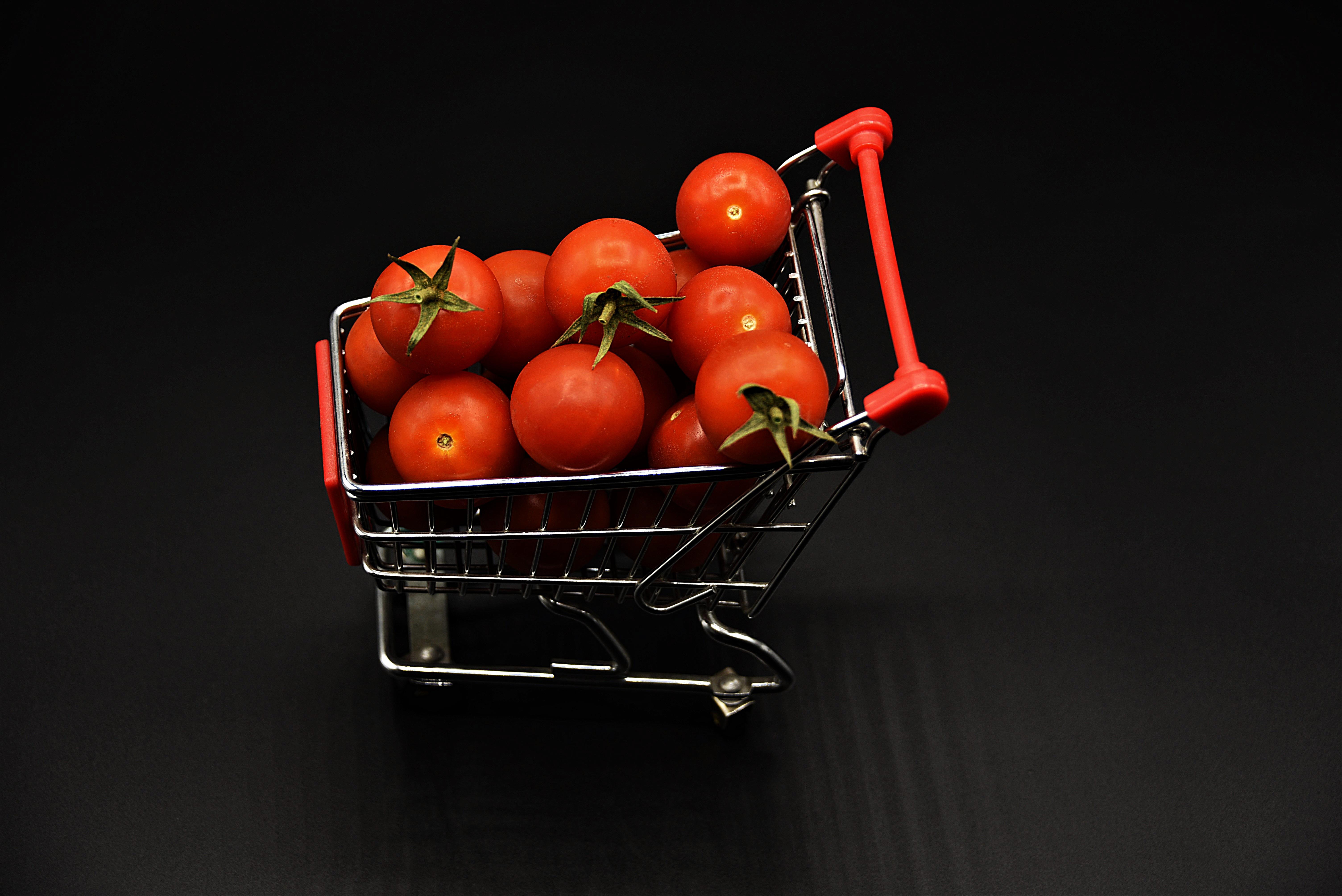 Маленькая тележка с красными помидорами - 6016x4016