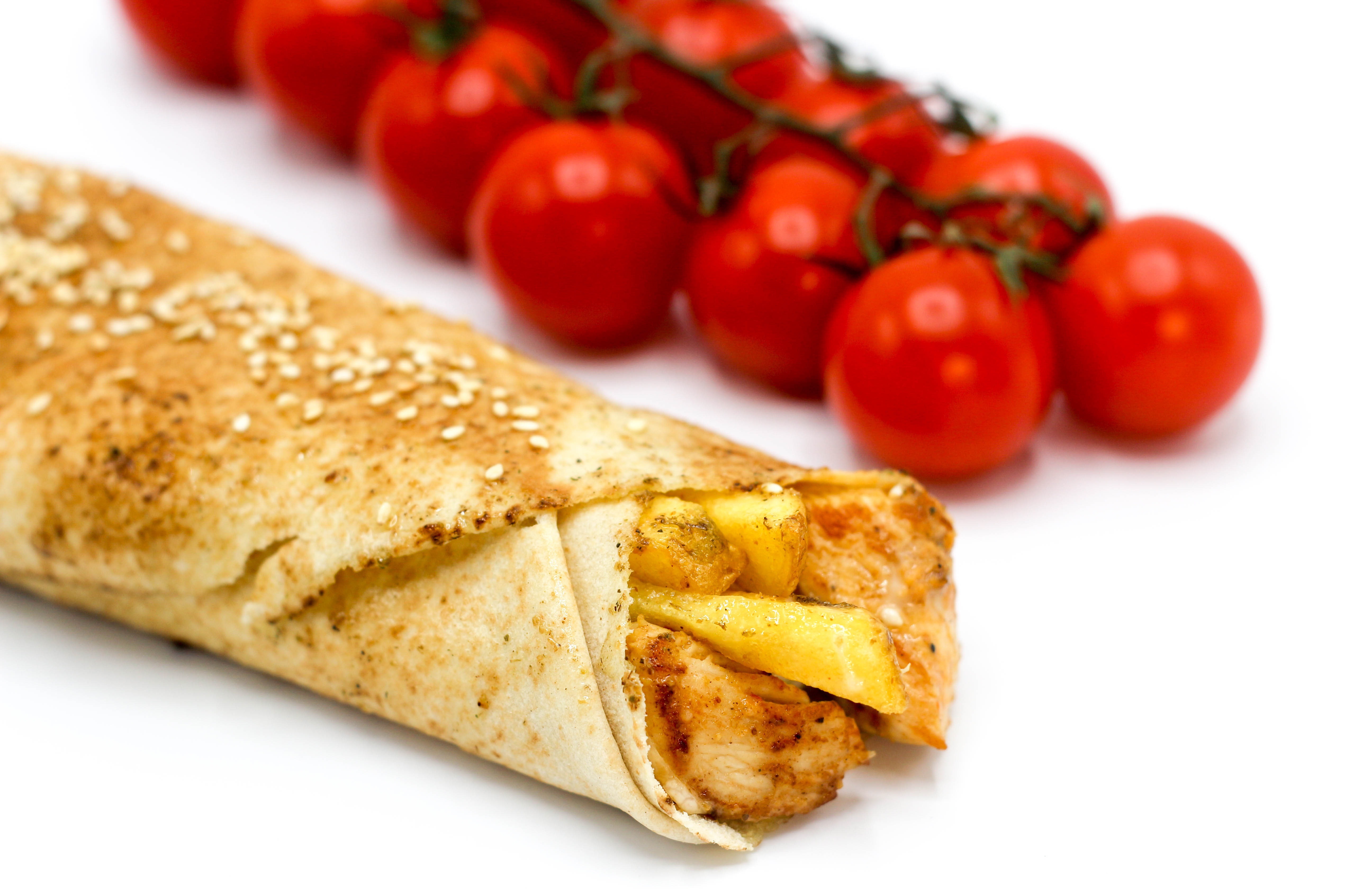 Шаурма с помидорами на столе - 5184x3359