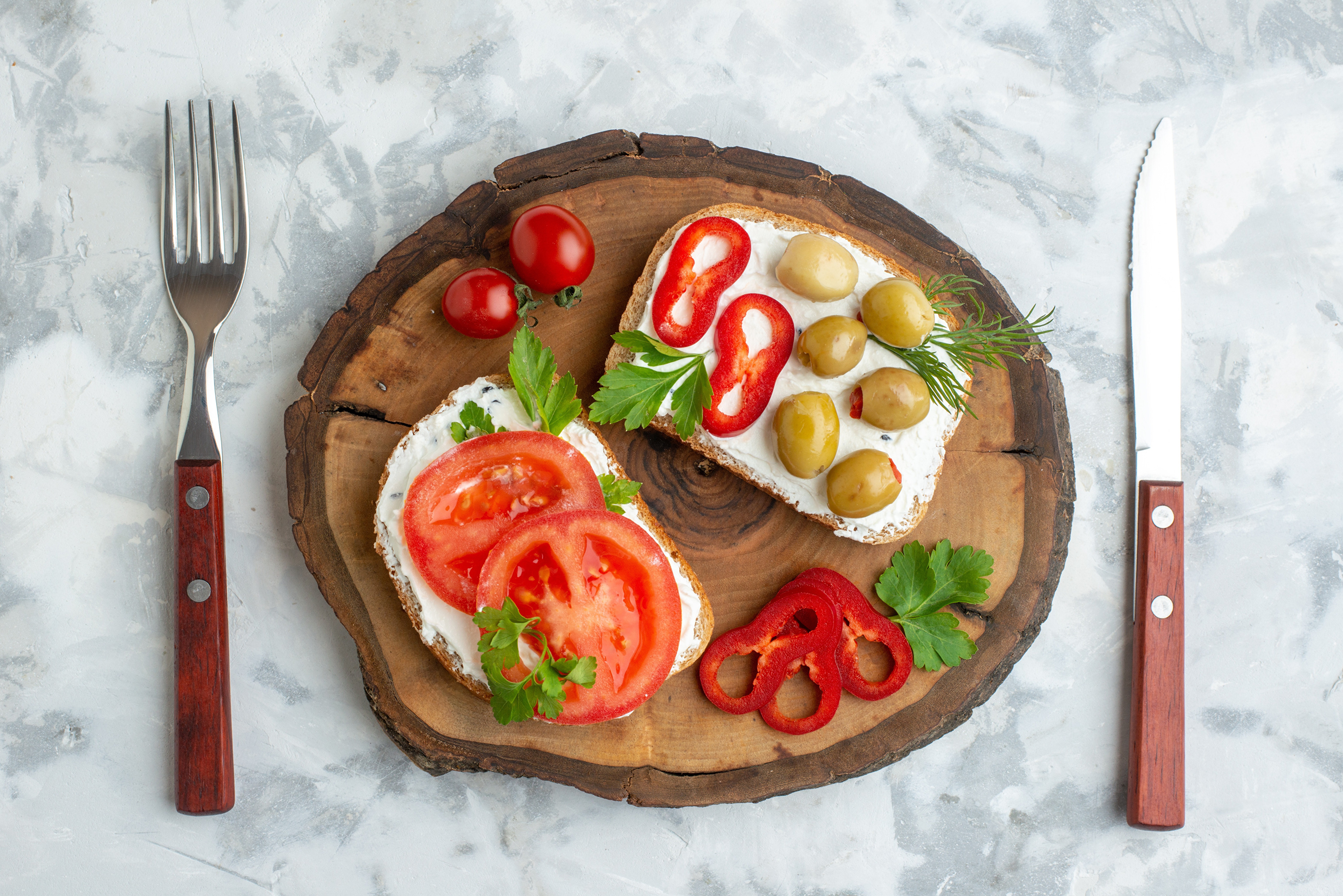 Бутерброды с сыром, оливками и кусочками помидора - 3840x2562