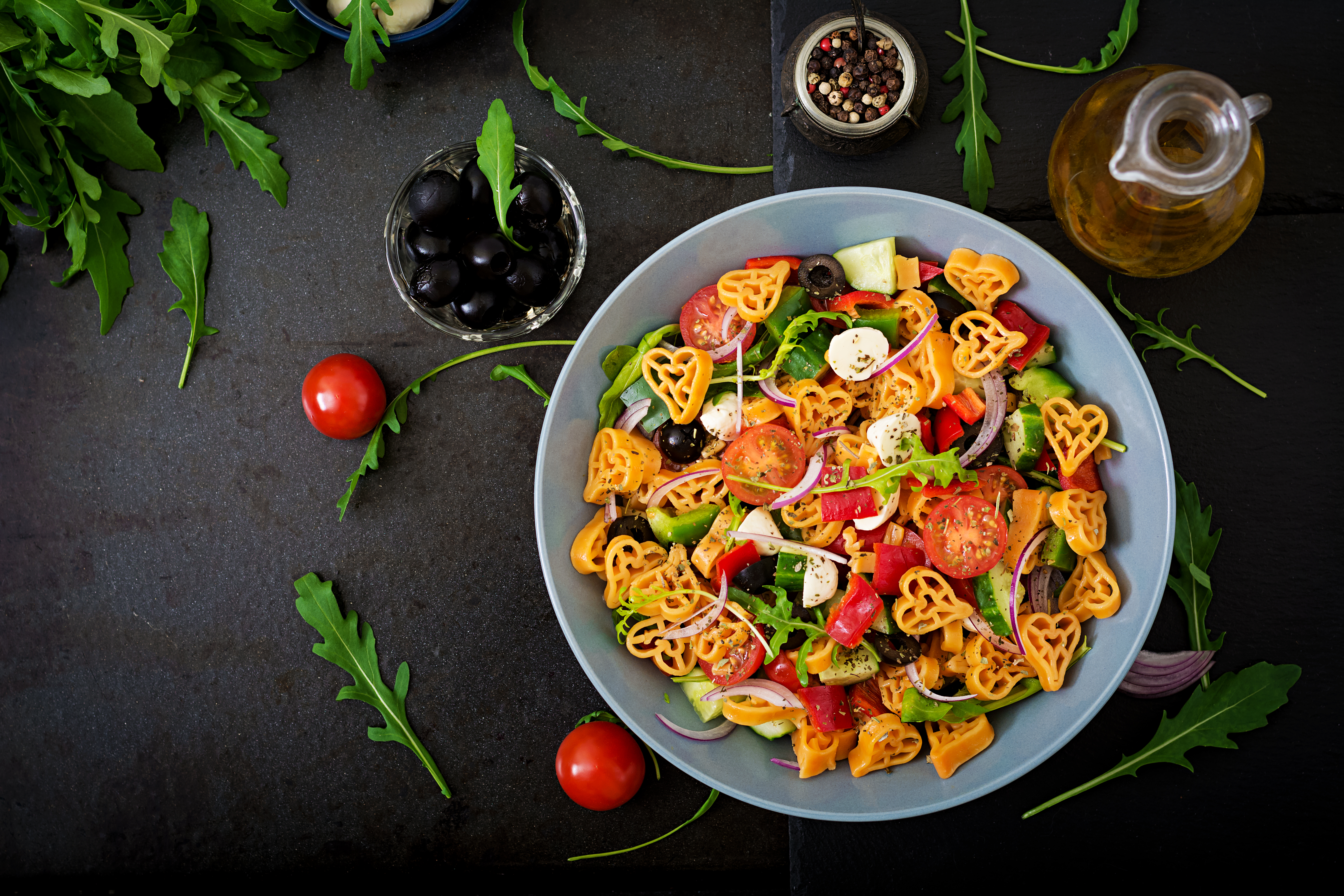 Овощное блюдо с макаронами в тарелке - 6000x4000