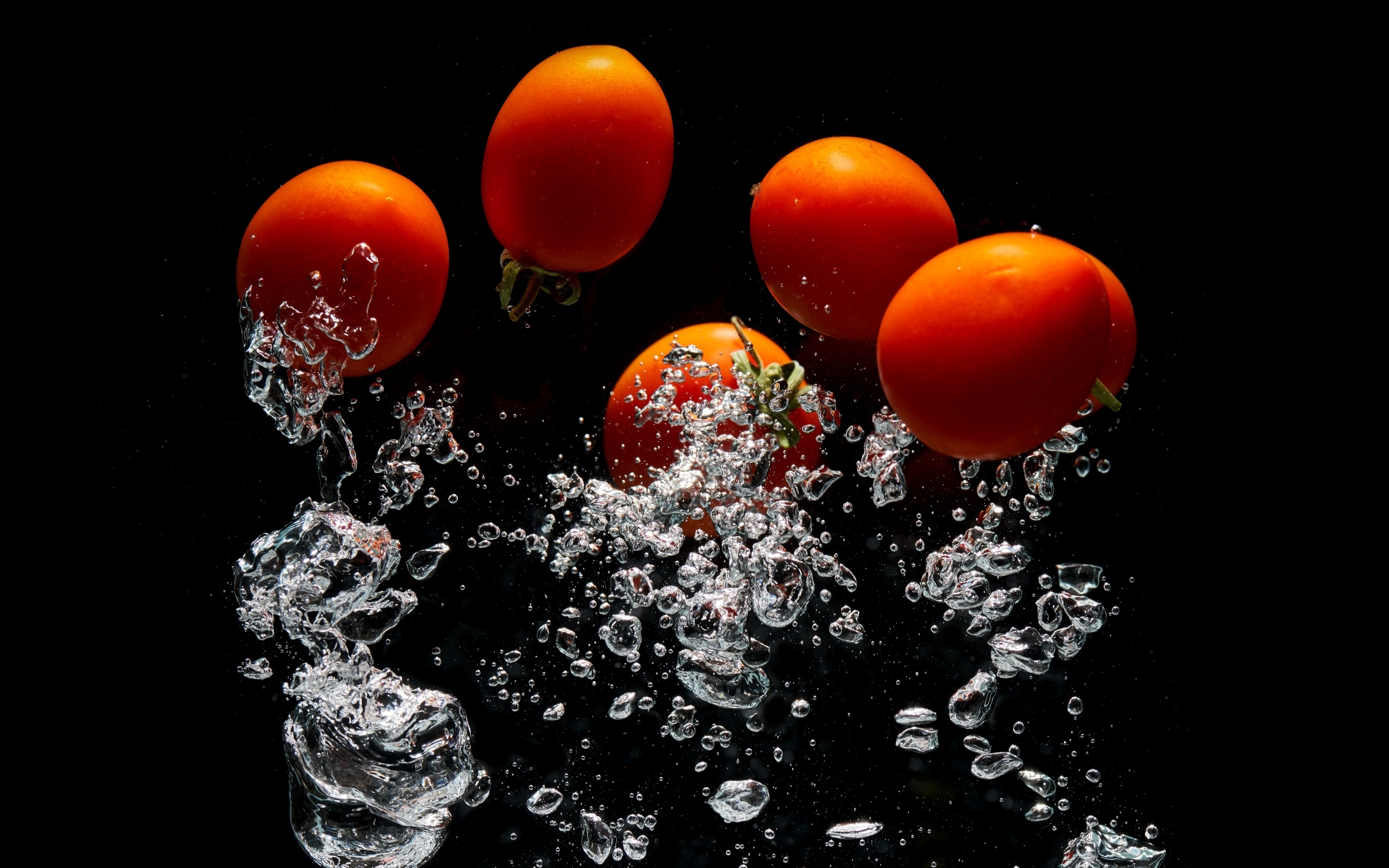 Красные помидоры в воде на черном фоне Обои для рабочего стола 2560x1600