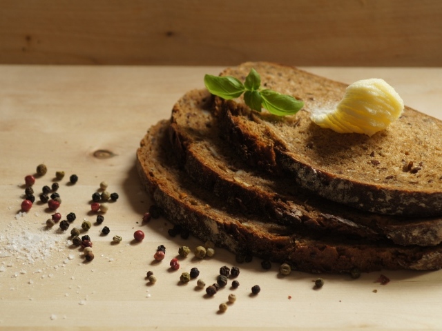 Обои: Нарезанный хлеб с маслом и перцем на столе