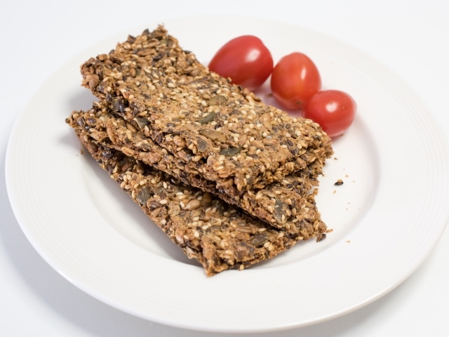 Обои: Полезны злаковые хлебцы на тарелке с помидорами