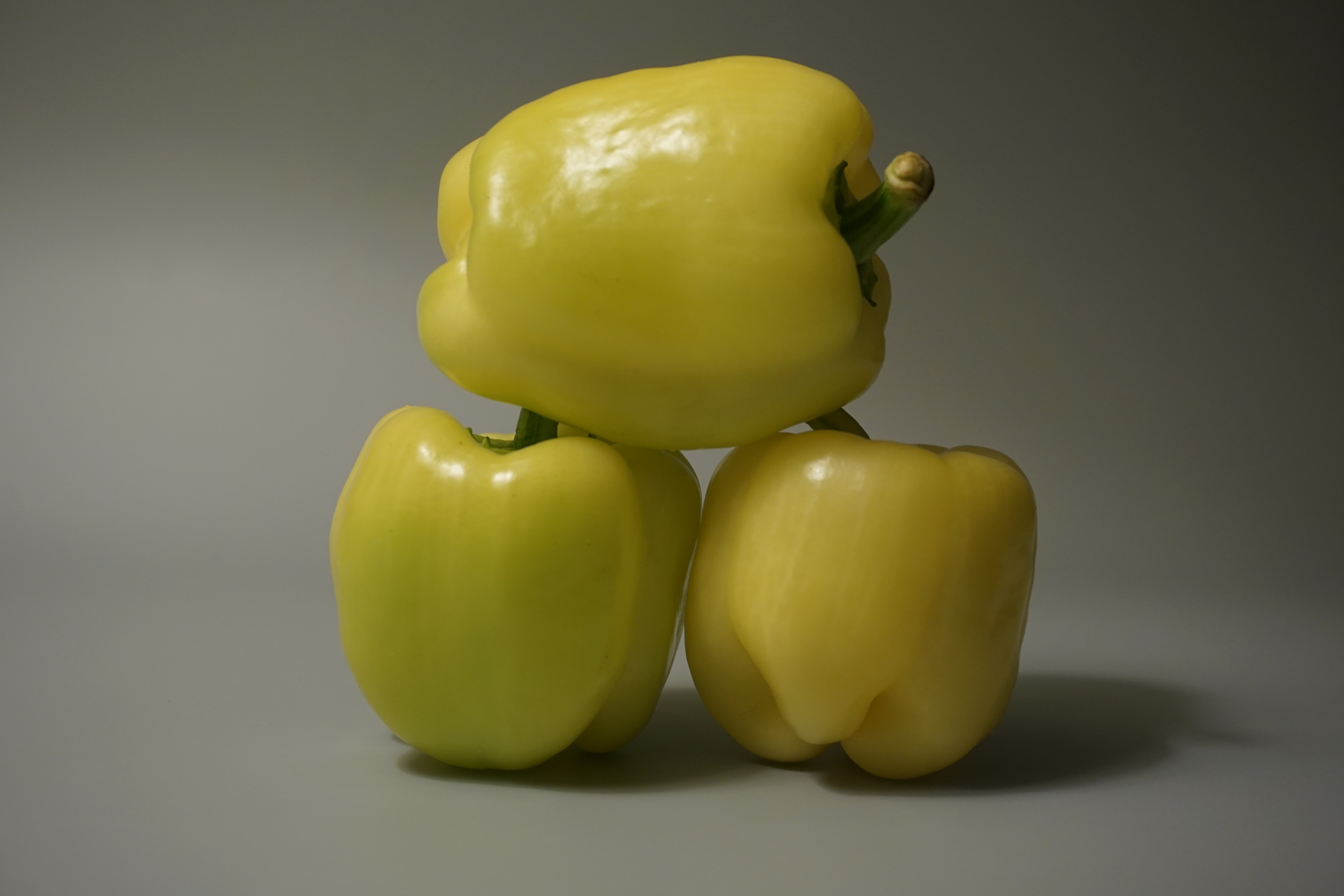 Три желтых перца на сером фоне - 6000x4000