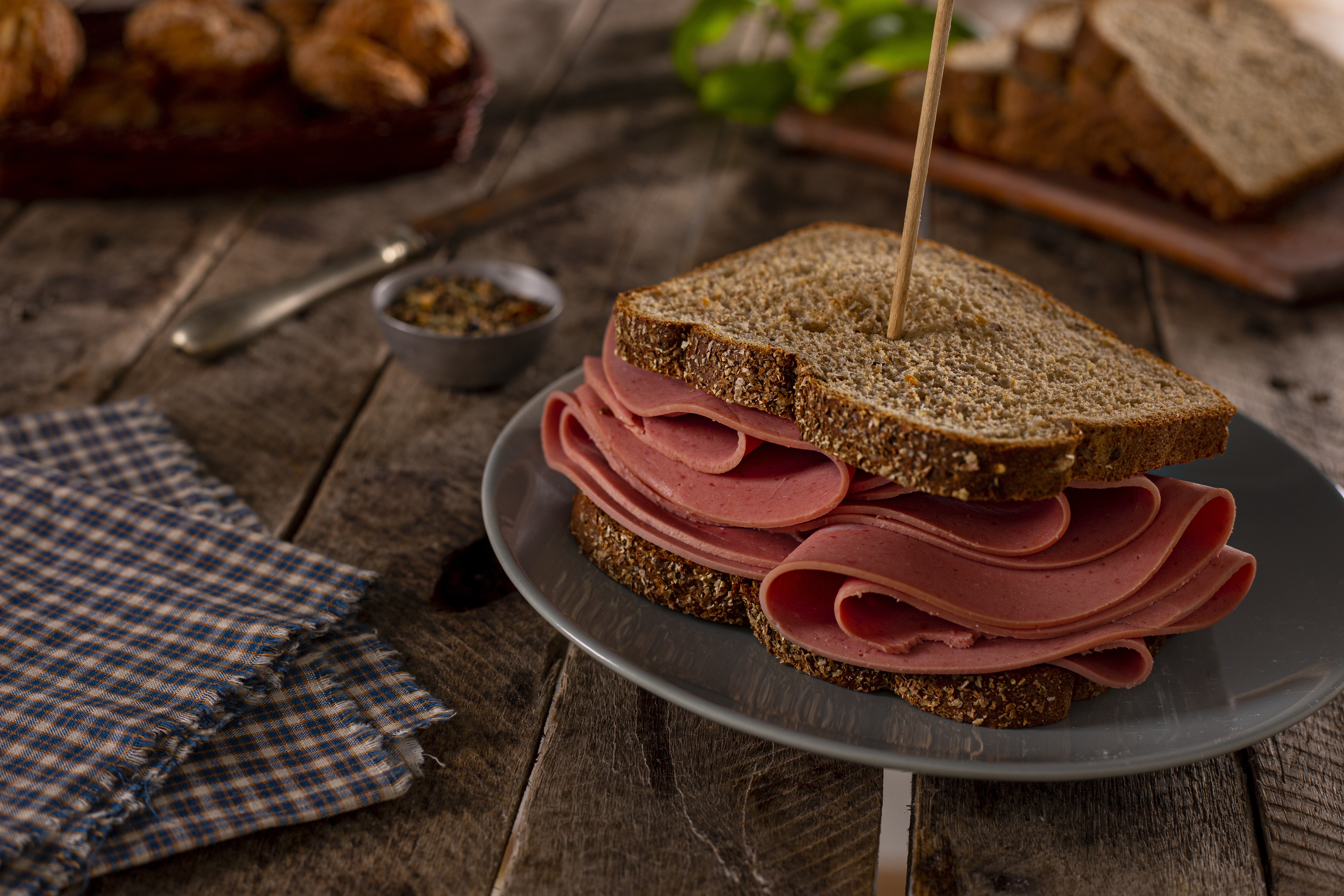 Бутерброд с черным хлебом и ветчиной - 5472x3648