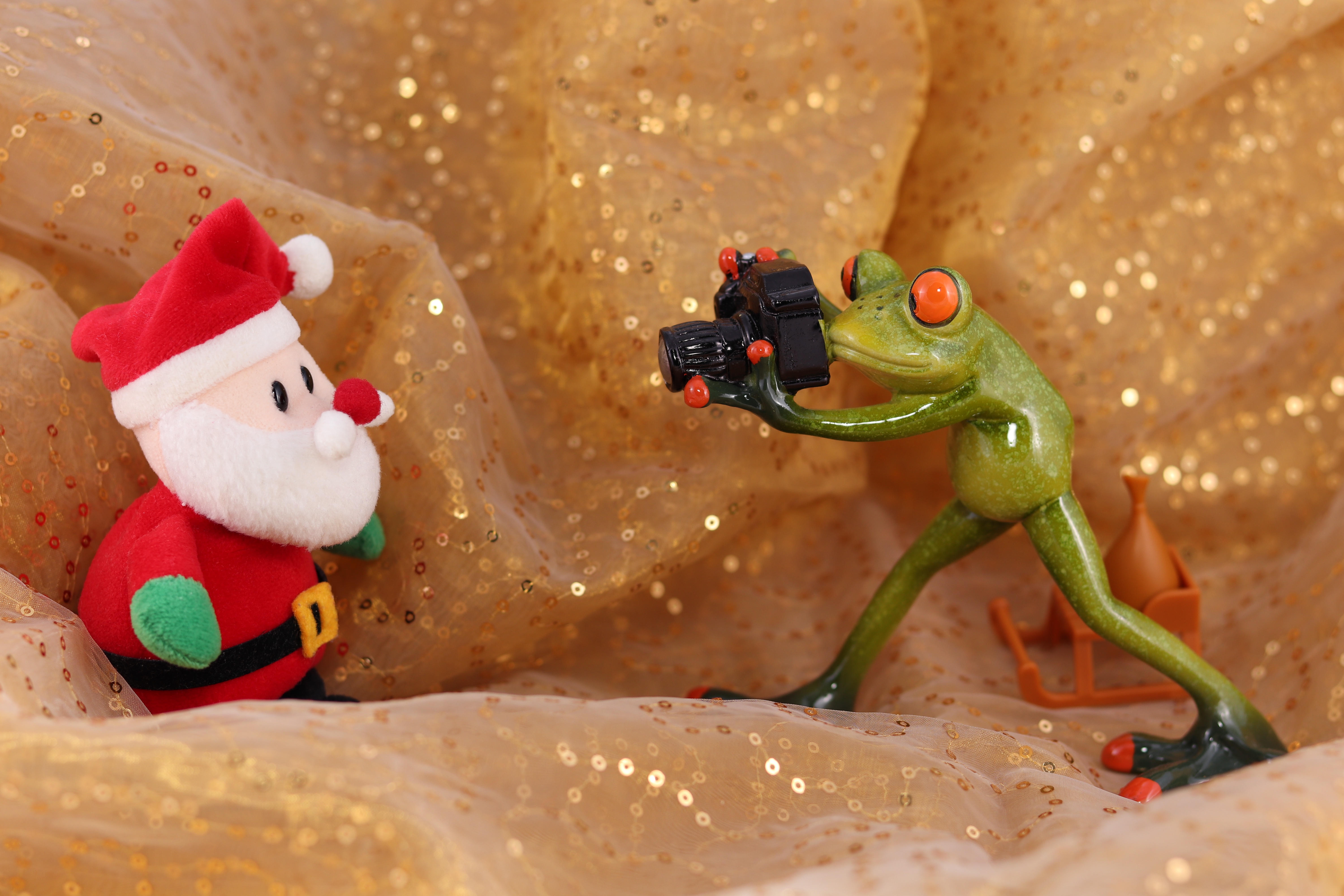 Зеленая жаба фотографирует Деда Мороза - 6000x4000