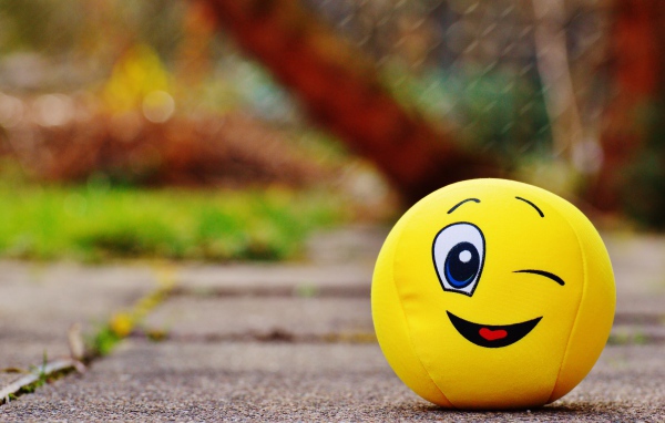Желтый мяч смайлик подмигивает глазом Обои для рабочего стола 600x382
