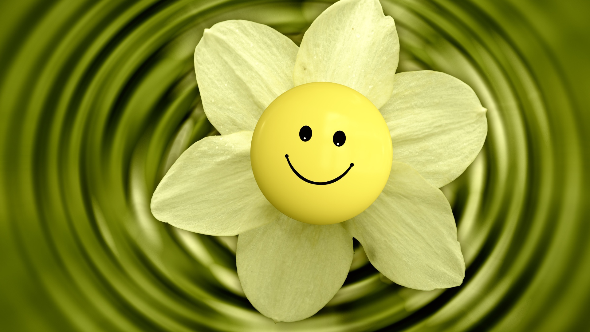 Цветок нарцисса со смайликом в воде Обои для рабочего стола 1920x1080