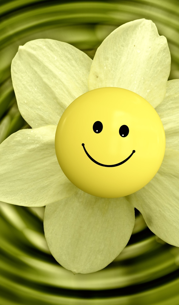 Цветок нарцисса со смайликом в воде Обои для рабочего стола 600x1024