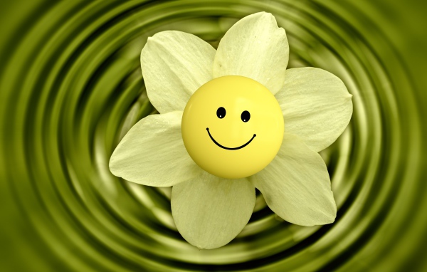 Цветок нарцисса со смайликом в воде Обои для рабочего стола 600x382
