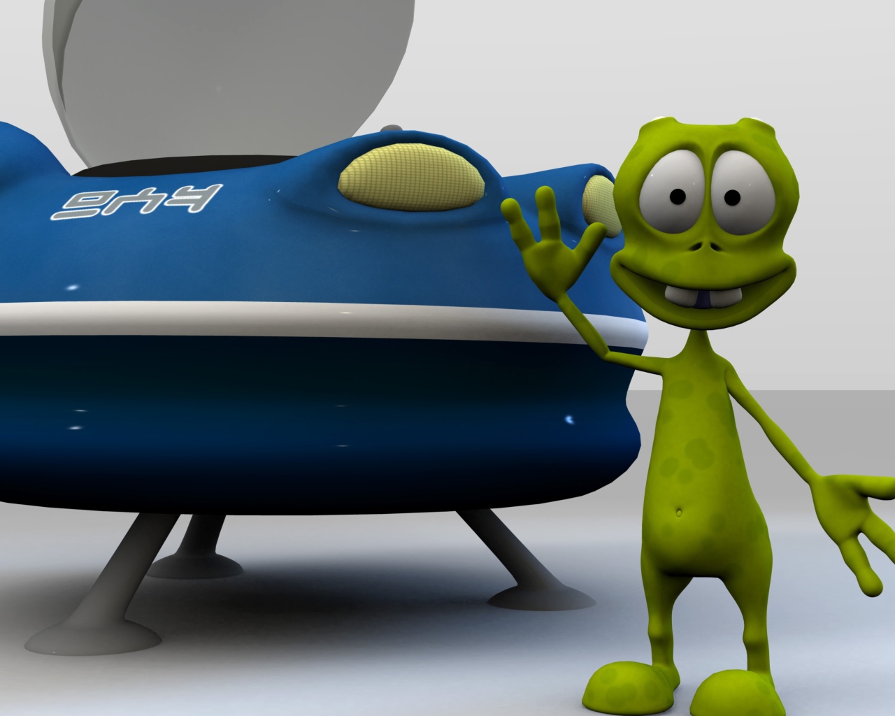 Зеленый инопланетянин у космического корабля Обои для рабочего стола 1280x1024