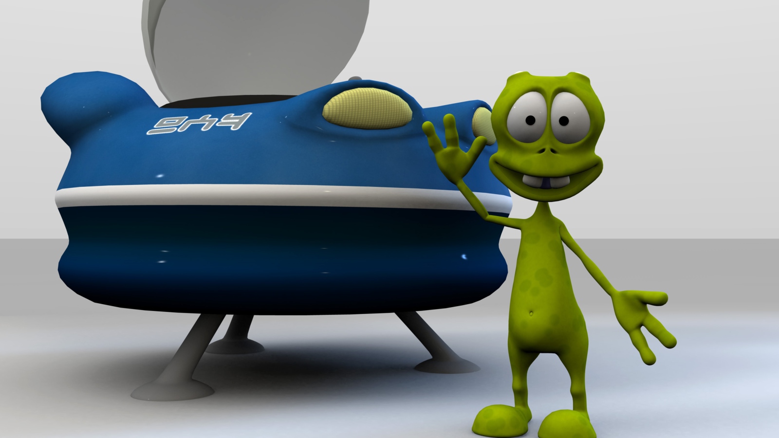 Зеленый инопланетянин у космического корабля Обои для рабочего стола 1600x900