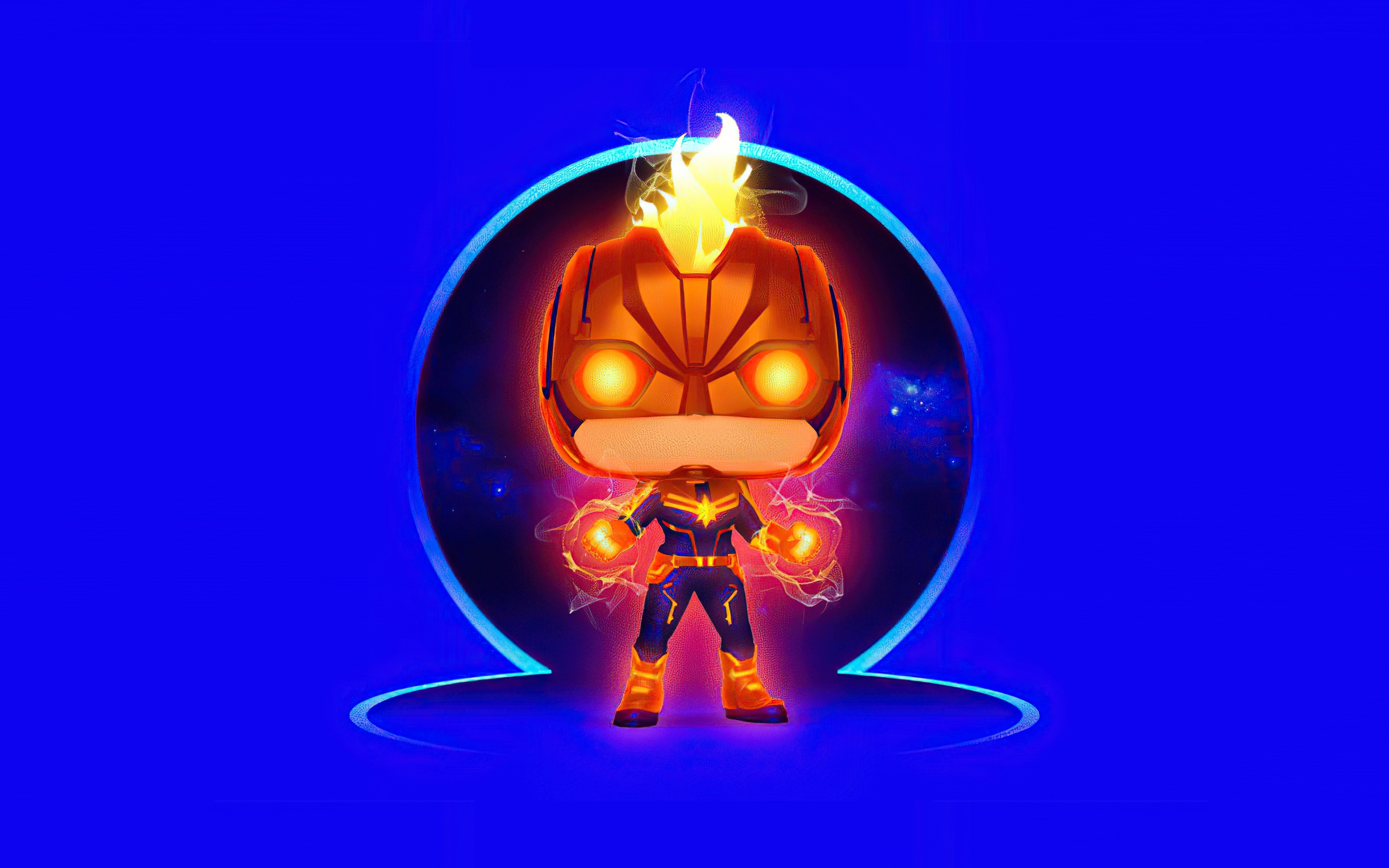 Супергерой капитан Марвел на голубом фоне - 3840x2400