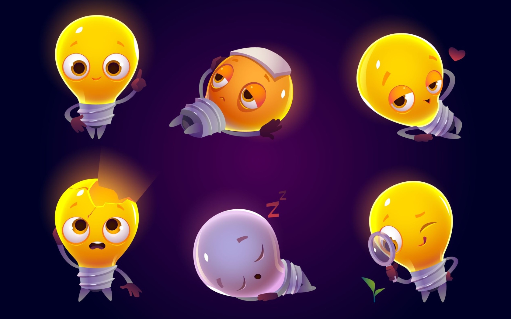 Смешная желтая лампочка на сиреневом фоне - 2532x1706