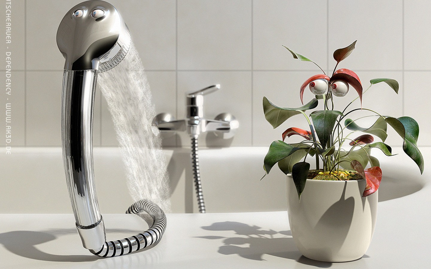 Цветок и душ с глазами - 1440x900