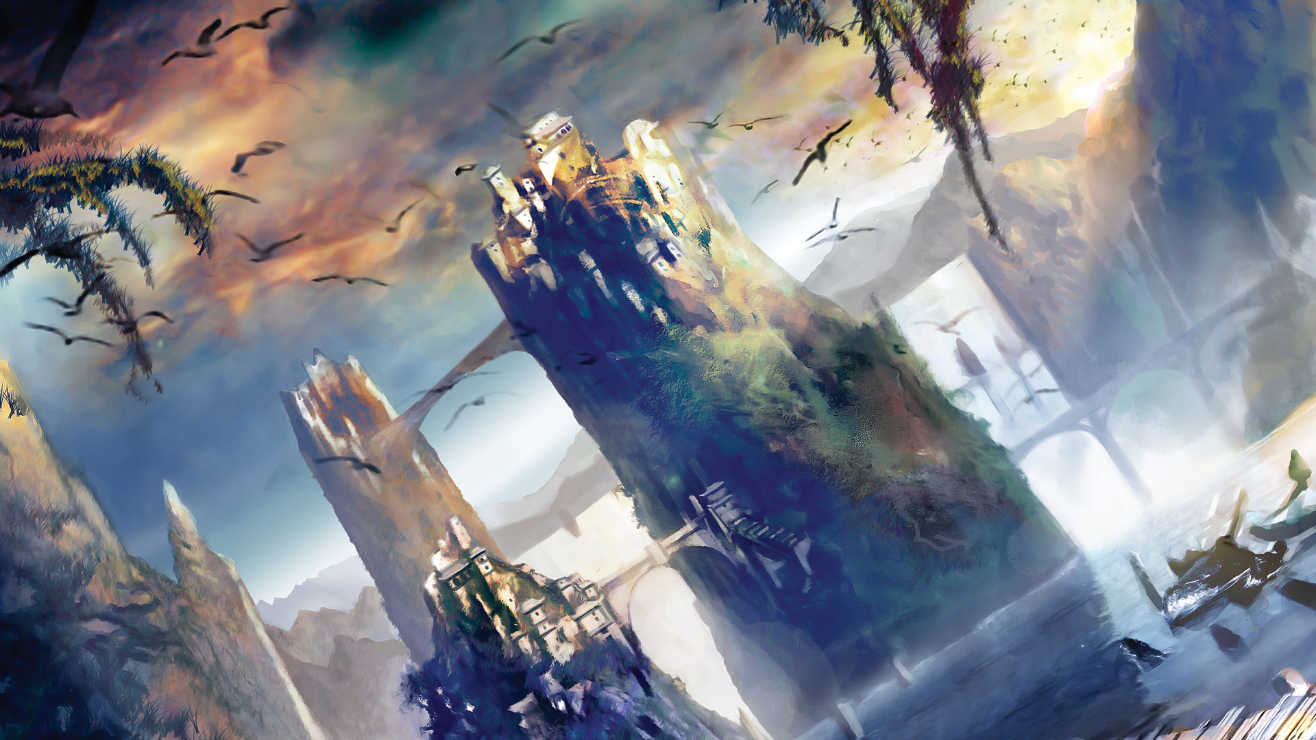 Замок и птицы - 1920x1200