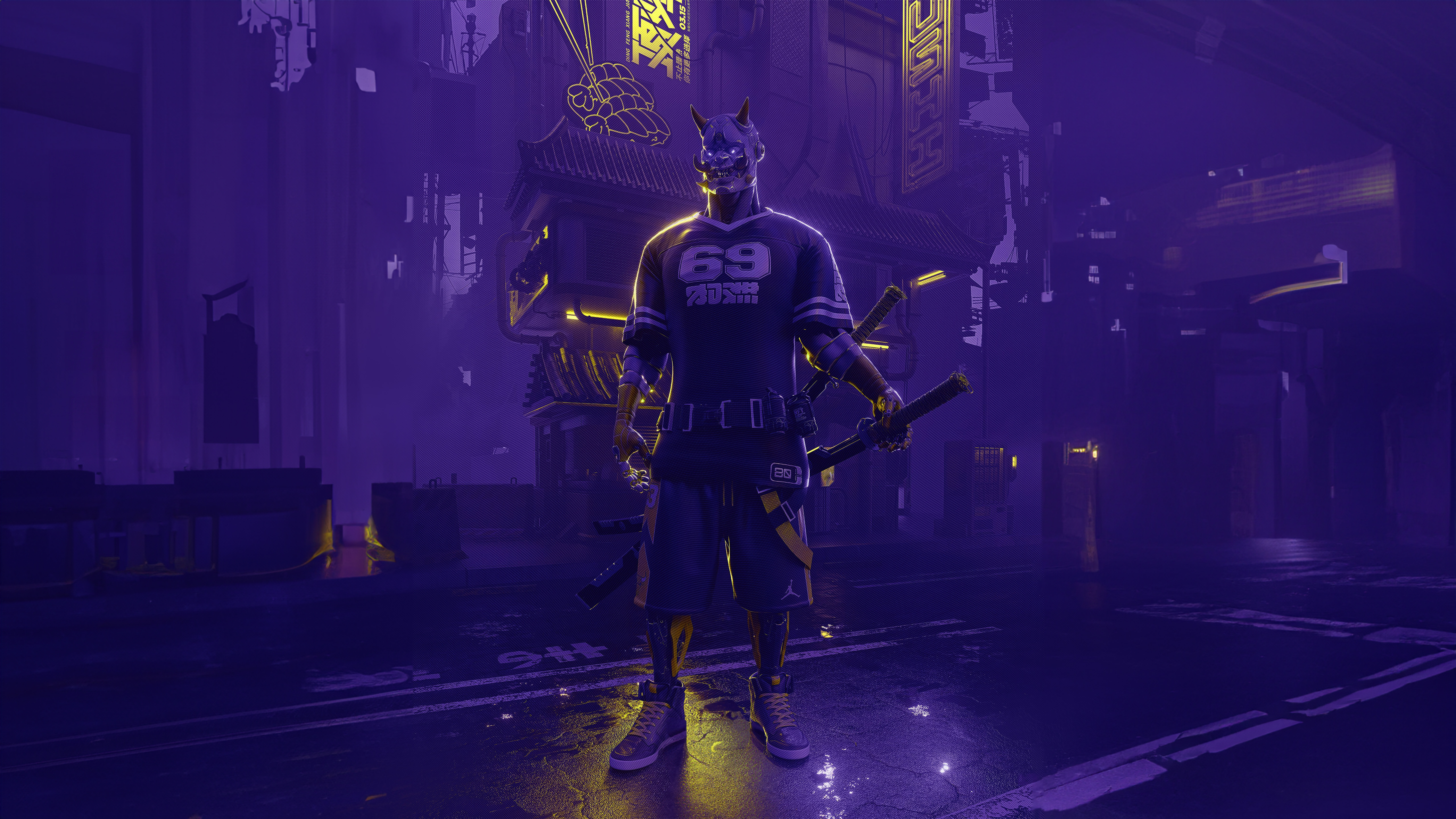 Мужчина в спортивном костюме и маске демона - 5120x2880