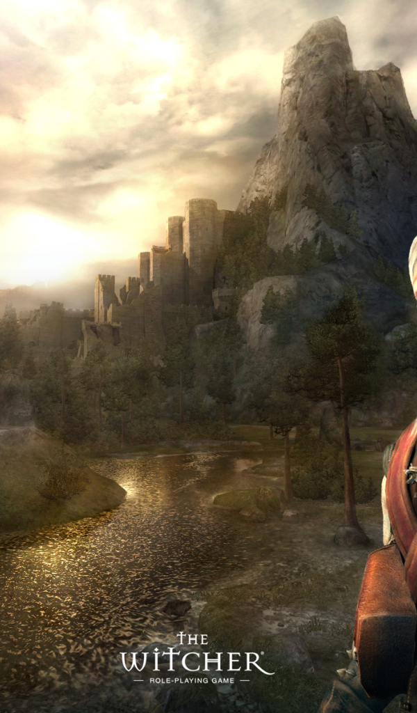 Ведьмак на фоне гор Обои для рабочего стола 600x1024