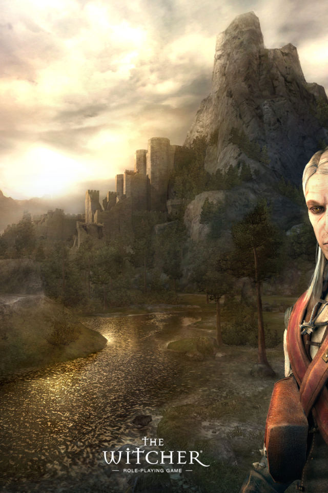 Ведьмак на фоне гор Обои для рабочего стола 640x960