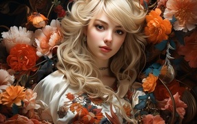 Красивая девушка 3д в большой шляпе с белыми цветами