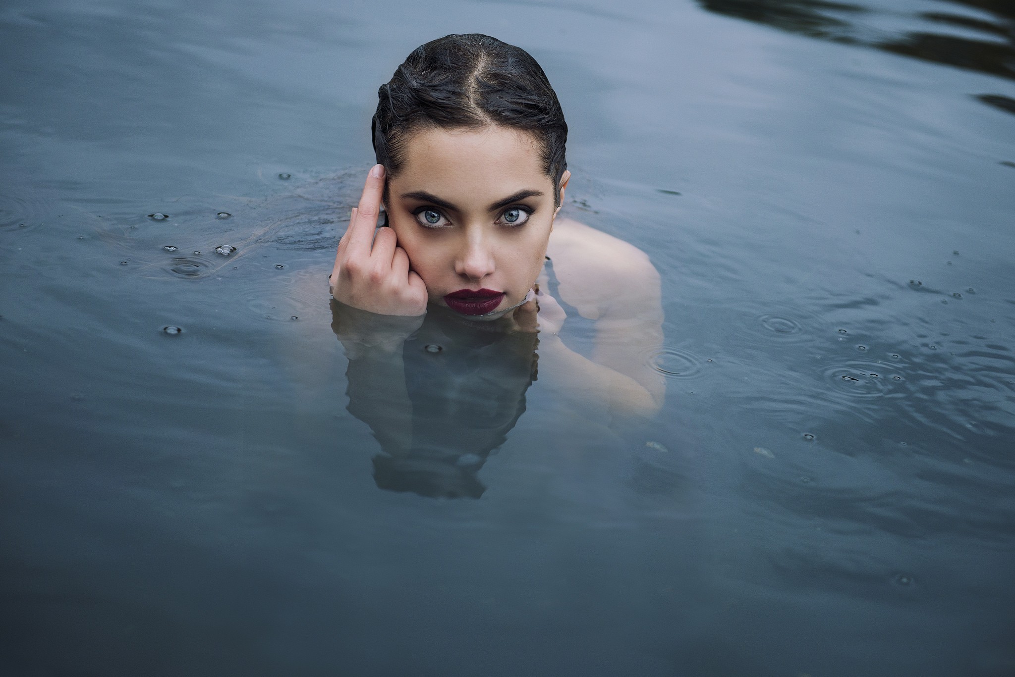 Красивая девушка русалка в воде - 2048x1367